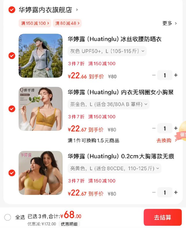 华婷露 防晒系列/文胸/内裤凑单车