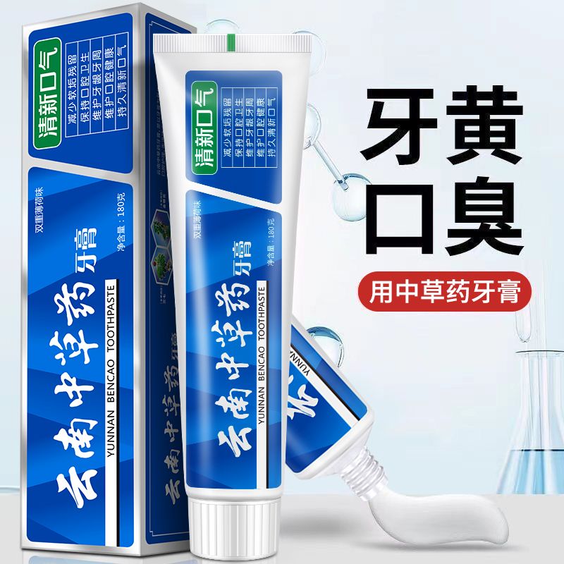 正品云南中草药牙膏亮白祛黄祛口臭祛牙渍口气清新薄荷味男女通用