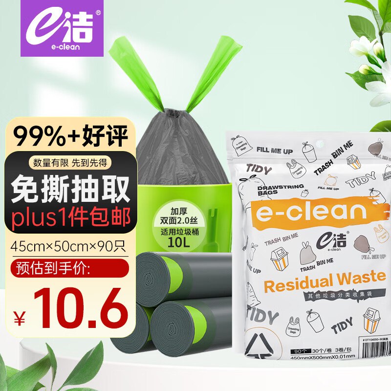 🎒 【自营】e洁 自动收口抽绳垃圾袋 90只