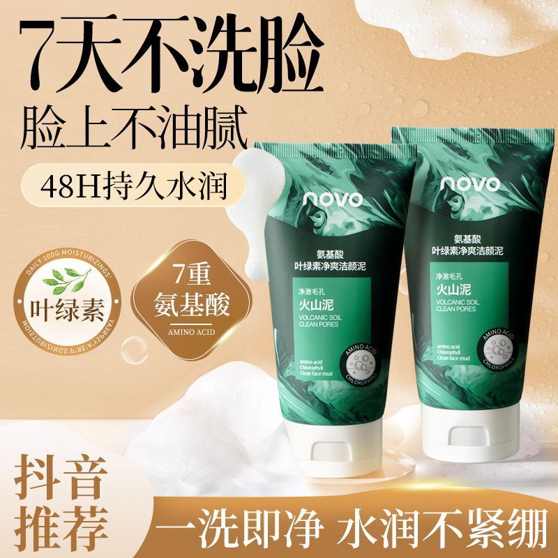NOVO叶绿素氨基酸细嫩洁颜泥深层清洁温和保湿控油洗面奶男女学生