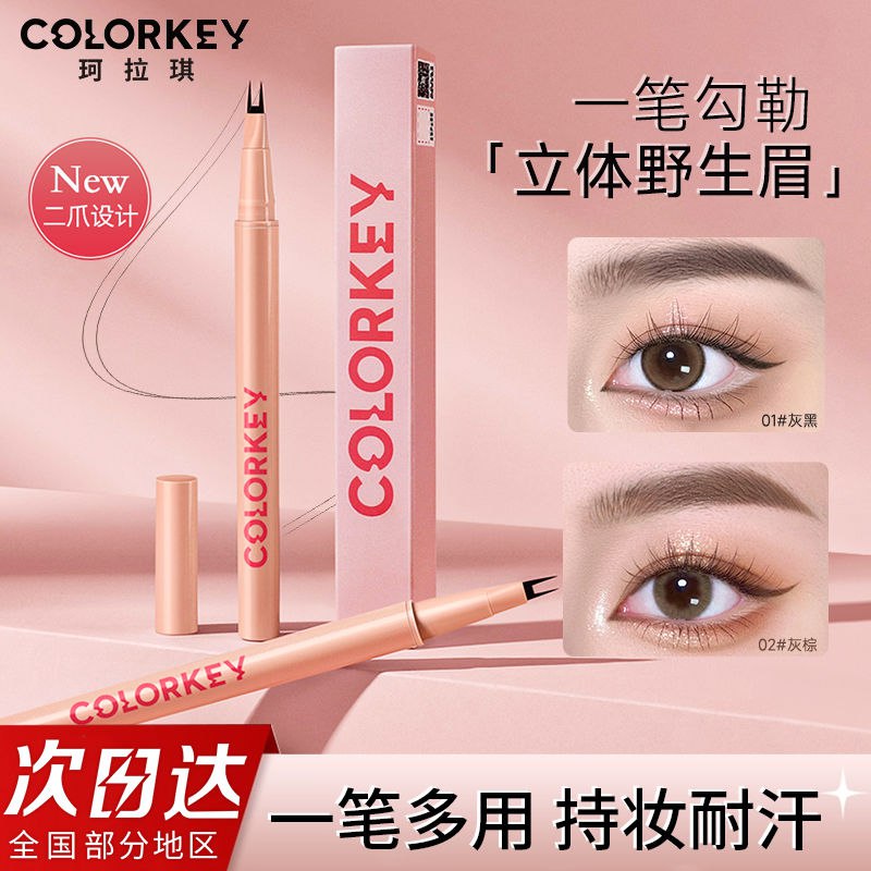 2支Colorkey珂拉琪二叉水眉笔防水防汗不晕染不脱妆根根分明自然