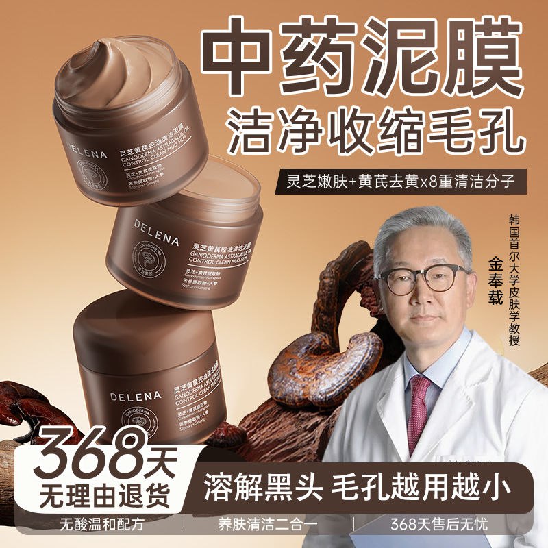 老国货黄芪深层清洁泥膜去黑头粉刺闭口保湿控油去黄提亮面膜学生