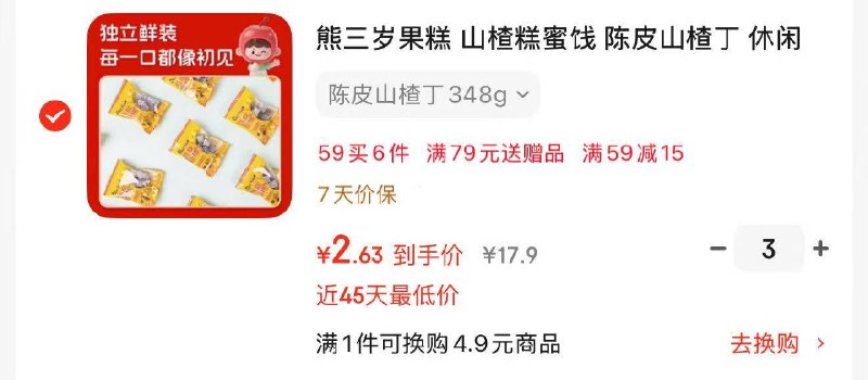 3件凑后单价2.63,凑单牧果人3件,奶片1件、大枣1件。