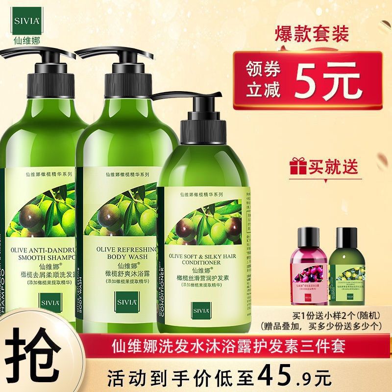 仙维娜橄榄去头屑洗发水沐浴露护发素大套装男女通用持久留香去油