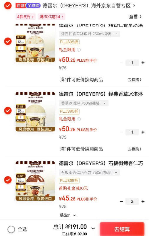 Plus叠首购任选4桶191元