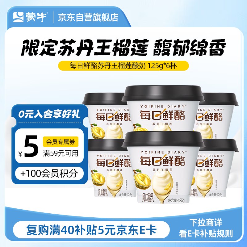 蒙牛 每日鲜酪苏丹王榴莲风味酸奶 125g×6杯