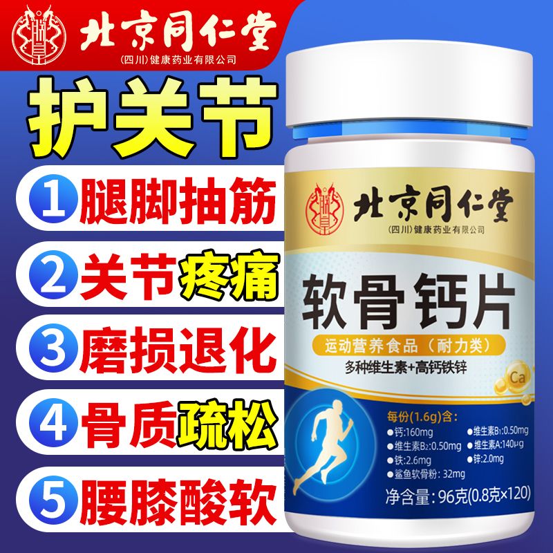 北京同仁堂内廷上用软骨钙片中老年人腿抽筋疼骨质疏松缓解关节痛