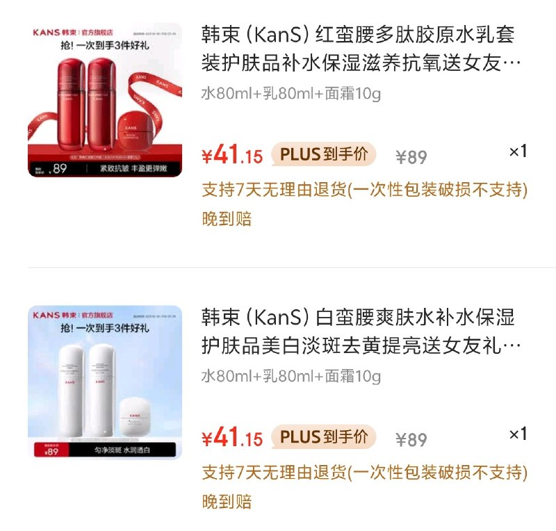 ①红蛮腰水80ml+乳80ml+面霜10g