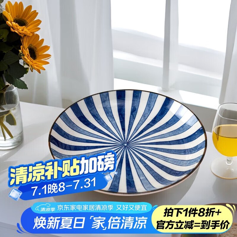 美浓烧陶瓷餐盘釉下彩大盘2件套