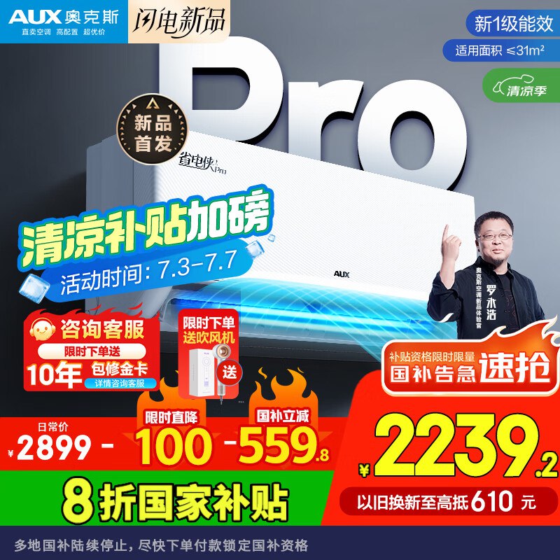 【自营】奥克斯 2匹 省电侠pro 1级空调挂机