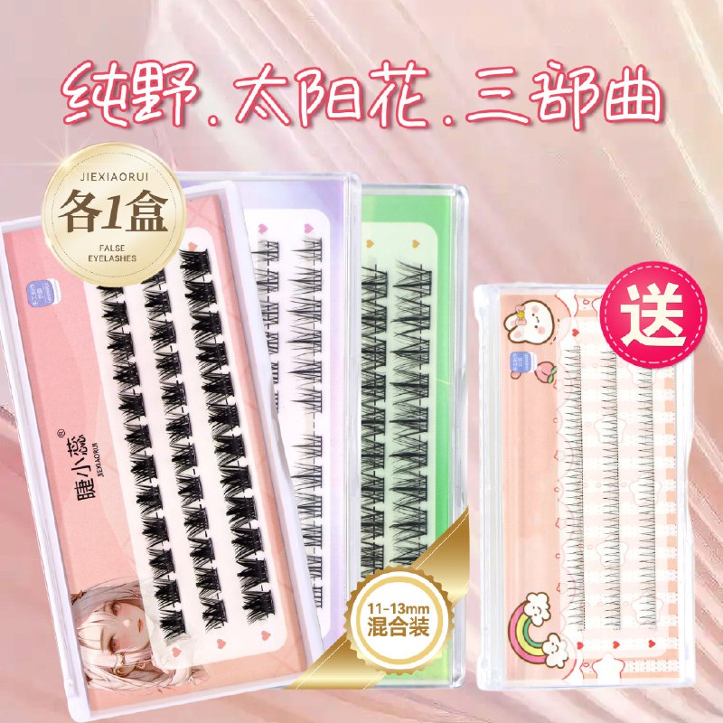 免胶纯野太阳花三部曲大容量组合猫系懒人新手单簇分段自粘假睫毛