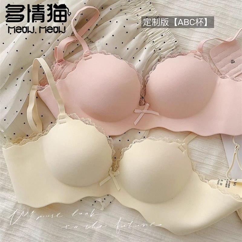 多情猫无痕内衣女小胸聚拢显大无钢圈收副乳防下垂一片式文胸罩